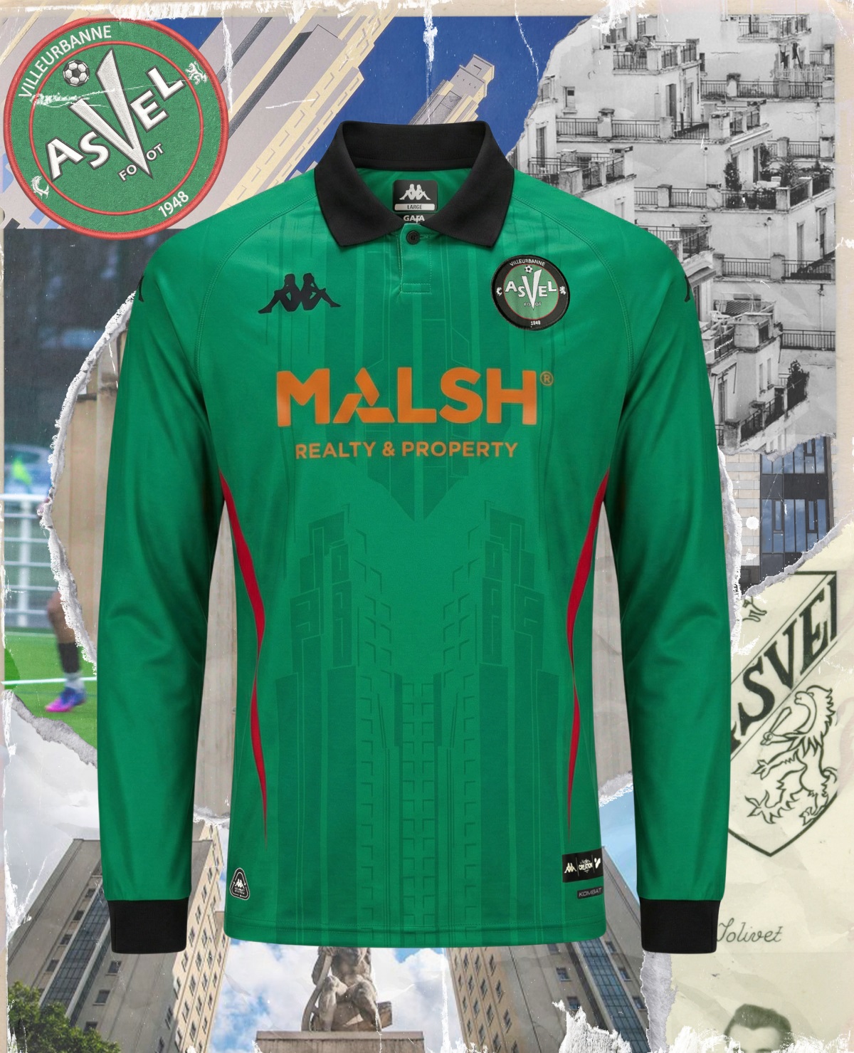 Pour cette création unique, ASVEL Foot a misé sur la couleur verte, chère à l’identité ASVEL. Un clin d’œil a également été fait aux gratte-ciels villeurbannais.